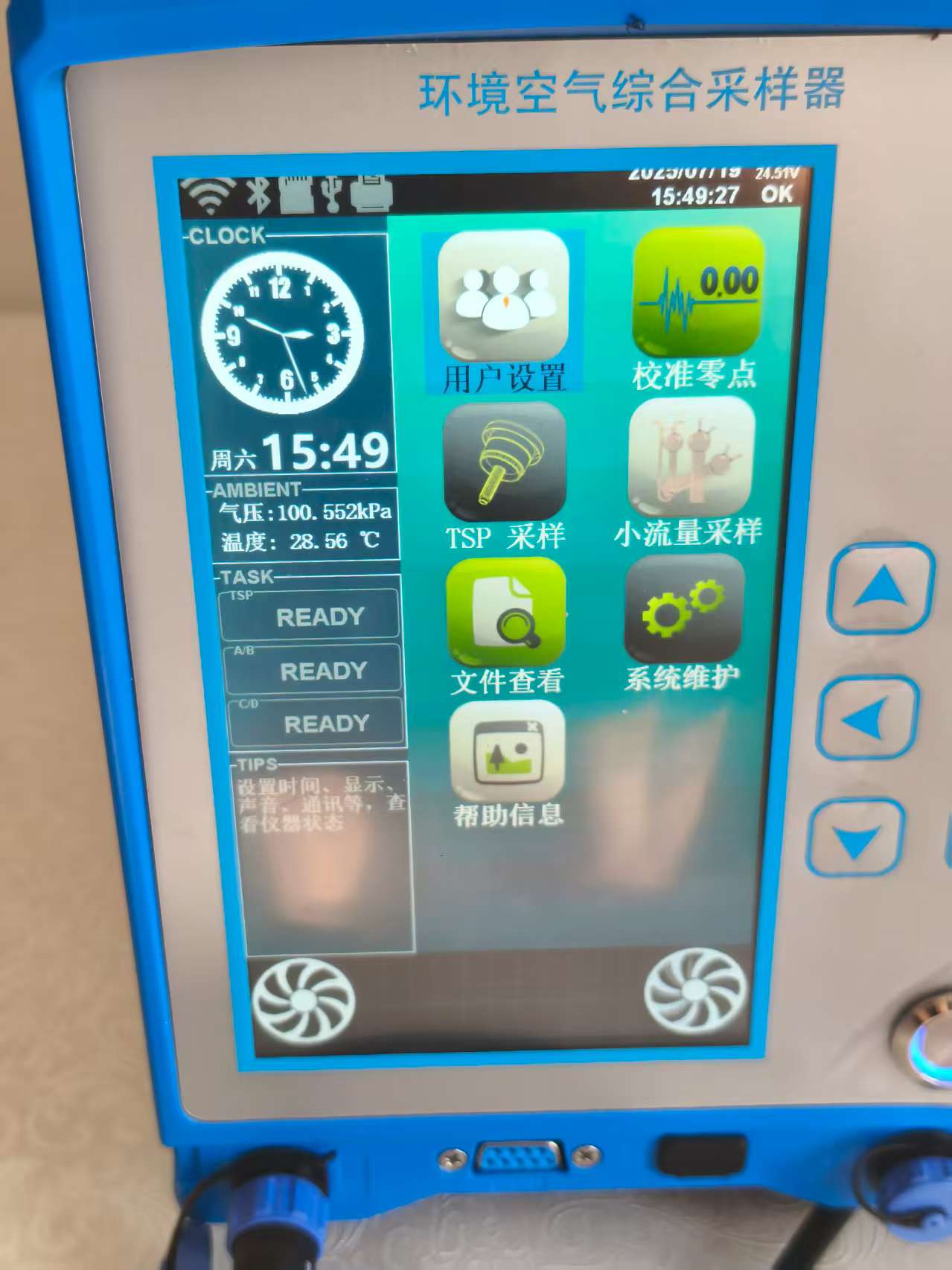 6) 顆粒物采樣流量(10-130)L/min可設置,選配相應的采樣頭可用于氟化物、重金屬、SVOS等的采樣;